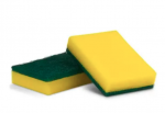 Esponja dupla face, verde e amarela, para utilização nas mais variadas limpezas.
